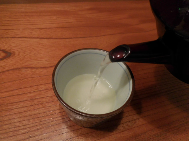 蕎麦湯は最初さらさら、最後にいくに従って軽くとろみを増す程度の自然体。