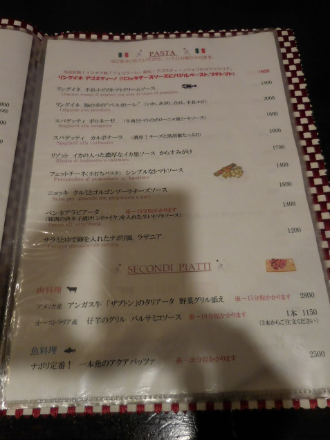 メニュー(パスタ、メイン)