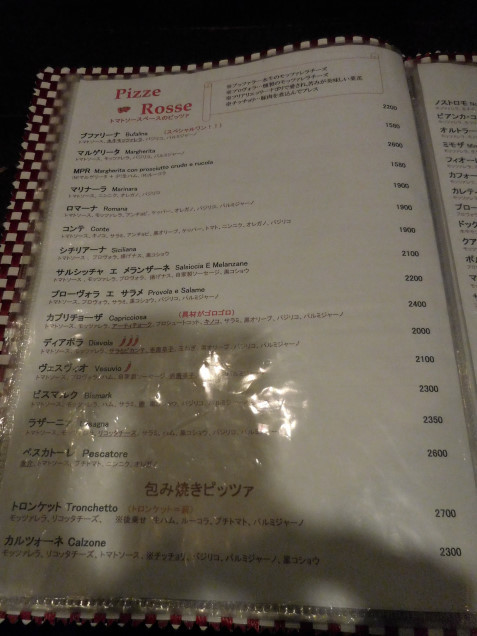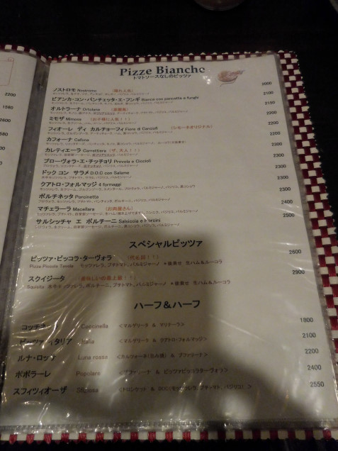 チーズののっていないPIZZE ROSSEからマリナーラの変化球ということでコンテ、生ハムも大好きなのでスペシャルピッツァからをピッツァ・ピッコラ・ターヴォラを注文。