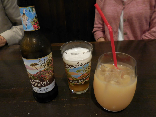 アントニアーナはイタリアビールらしく軽い味わい、桃ジュースはとろみのあるネクターでした。