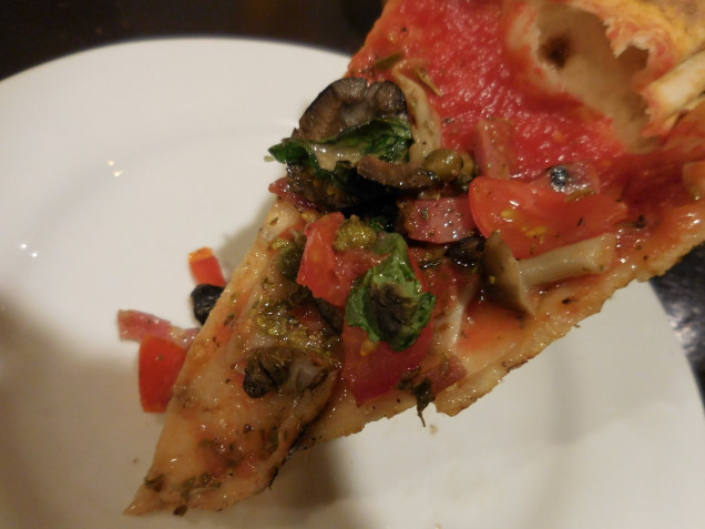 オリーブオイルの香りも風味も大好きですが、汁だく状態になるほどかけてあるピッツァもある中、こちらのものはそれがなく、大きさの割りにあっさりいただくことができました。