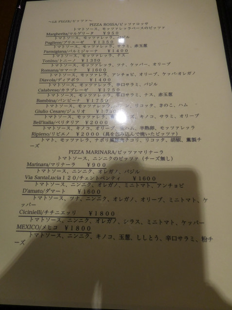 一番人気はやはりマルゲリータだそうですが、せっかく来たから具材がいろいろのったピッツァをいただいてみたいもの。