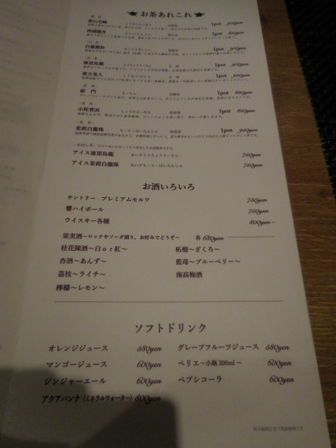 ドリンクメニュー