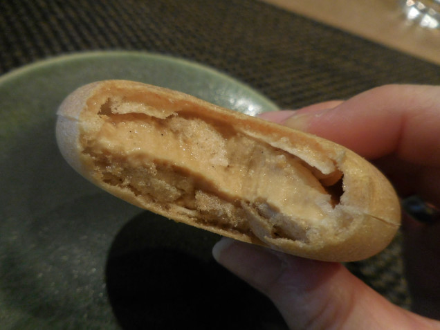 最中の種(皮)がパリッと香ばしく、ひんやりとしたアイスクリームはほのかな苦味と控えめな甘さでお料理の最後を締めてくれました。
