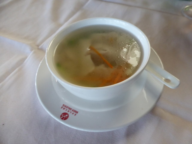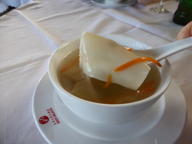 *雲呑スープ まずくはないのですが、皮がチョー硬くて厚い。中国に居る時でも各所で食べましたが、こんな雲呑は初めて。