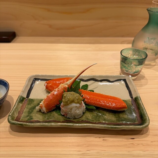 いきなり茶碗蒸しにズワイガニのかにみそが乗っている…と思ったら、中の茶碗蒸し部分にも蟹肉がたっぷり。最初から贅沢すぎる一品。