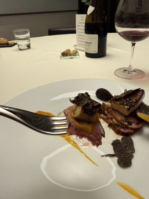 そしてメインは鴨。その上にフォアグラ、さらにフランス産トリュフ。これは、鴨のロッシーニ風だ。文句なしに美味しい。