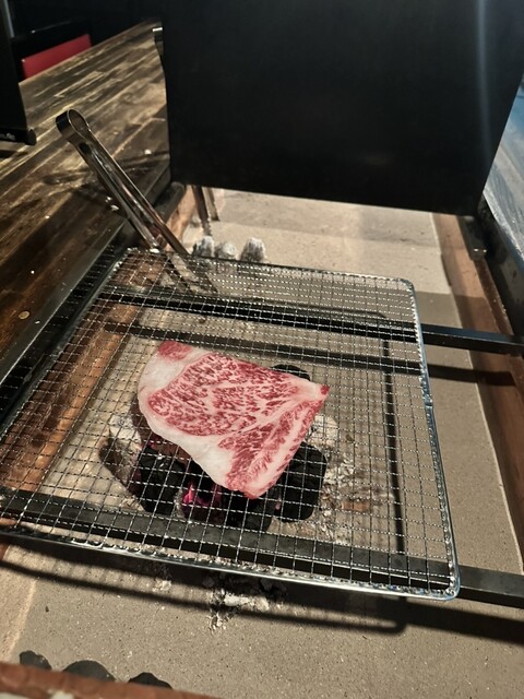 お店はほぼ地下。内装はモダンだが囲炉裏のある黒っぽい感じ。