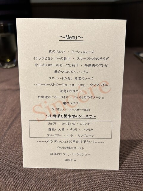 土曜のランチのみ営業しているため、なかなか予約が取れないお店ですが、運良く伺うことが出来ました。今回もワイン3杯セットを付けて。