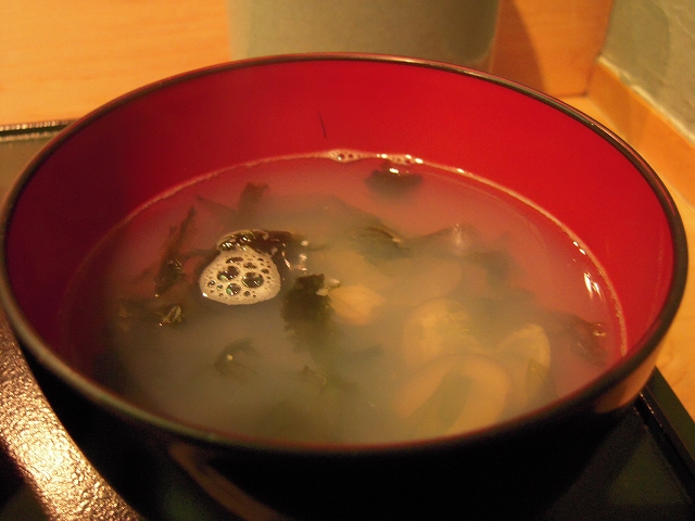 お味は見てのとおり、だしギラギラ・塩ギラギラではなく、潮汁のやうな軽いお味でし。この日は寒かったので暖かいお椀がありがたかったでし。