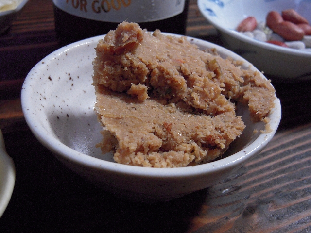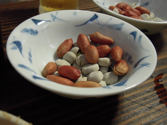 茶色が濃いでしね。味は薄めでし、すこーし香ばしいかほりがいたしやし。炒ったかほりか、おからのかおりか、両方か。若干海産物のかほりもいたしやし。あくまで『つまみ』でしね。そう考えると、しっくりきやし。