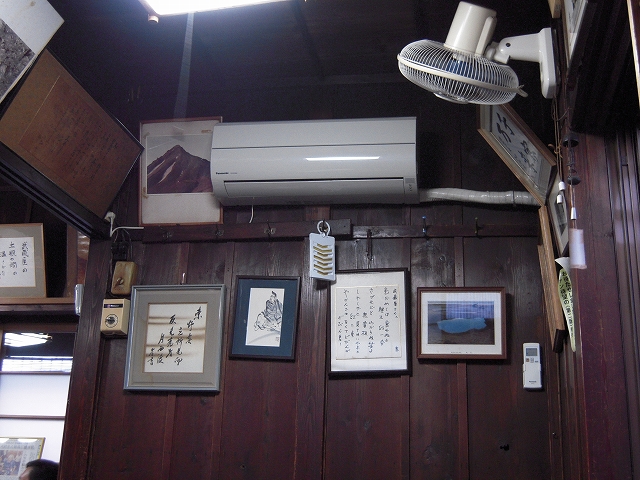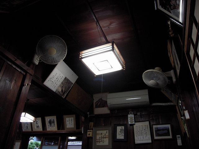 中も完全に民家でし。土間にテーブルが並んでて、奥が座敷(?)でし。お客さんの居住空間はどんくらいでせうか。畳で八畳くらいでせうか・・・ もう、お店はいっぱいなので、あっしらは案内役の方の指示で座敷に。