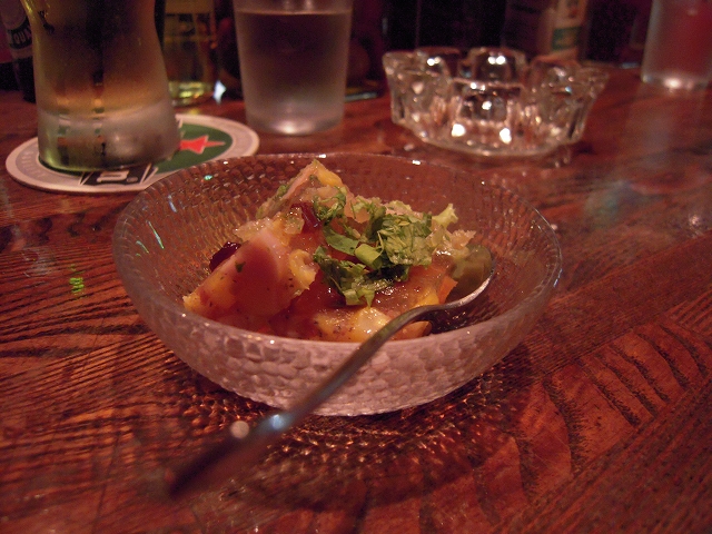 料理名不明。とうもろこしのにこごりのやうなものでした。店に入ってから酒がぐわんぐわん回ってきて、だいぶ不調♪ しかしこのお店、雰囲気としてはサイコーでし。近所にあったら間違いなく仕事帰りに立ち寄り決定でしね。