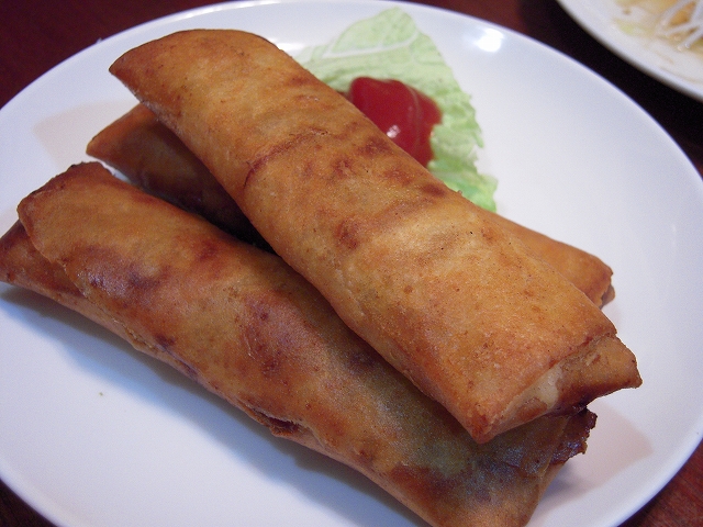 これもたいへんんまいでし。油はきっちり切ってあり、皮はパリっと香ばしいでし。割ったところの写真を撮れば良かったのでしが、忘れやした。餡は、春雨や野菜や肉がバランスよく入っており、あんかけのやうなとろっとしたものが絡めてある、よくある春巻きのそれでし。でしが、調味料の主張が少なく、餡の旨みと皮の触感で頂く感じでし。上品であり食べ応えもあり。