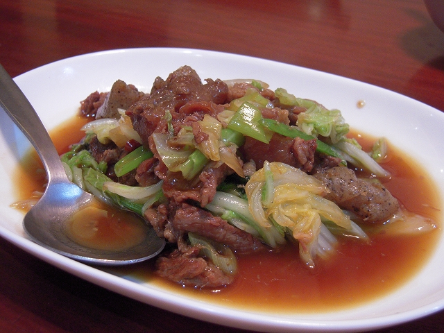 中華街で出てくるものとは思いやせんでした。長時間煮込んであると思われる牛すじは、すっかりやわらかくなっており、うまみたっぷりでし。へむ的には、主役の牛すじよりもはくさいとこんにゃくがんまいかったでし。この味付けも、何味と形容しがたい、素材を活かした味付けでした。