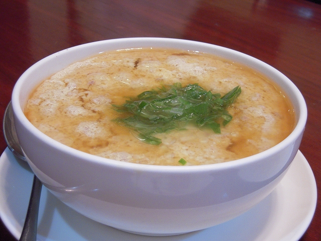 これは、ほんとーにやさしい味でした。玉子のぷるぷる感とひきにくの触感だけでし。だしは、いわゆる和食のそれよりは、ほんのすこしだけ味付けを強くしてあり、単なる和食屋さんの茶わん蒸しと区別できるものでし。