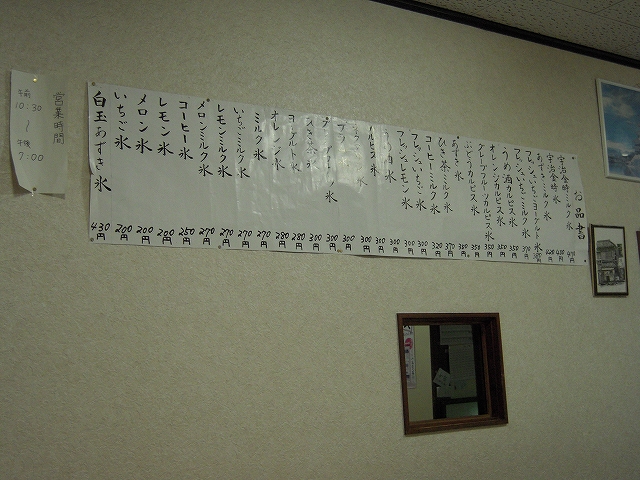 前回のエントリーの『広栄堂』のななめ向かいでし。ここも本来は、おもちや赤飯や大福等を作っているお店で、夏だけかき氷をやっているとのことでし。