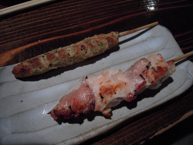 自家製つくね(¥150税込)と、比内地鶏串焼(¥400税込)<写真参照>