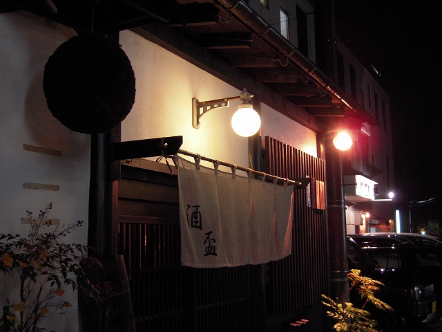 市役所から歩いて5分くらいでせうか。山王の西側の集中地帯にありやし。この日は、午後から雨でした。入口にはライトがありやし。杉玉もぶらさがってやしね。
