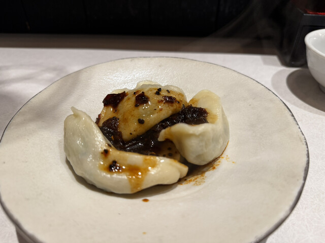 水餃子はもっちりとした皮で、ひと口噛むと中から肉汁がじゅわっと溢れ出します。