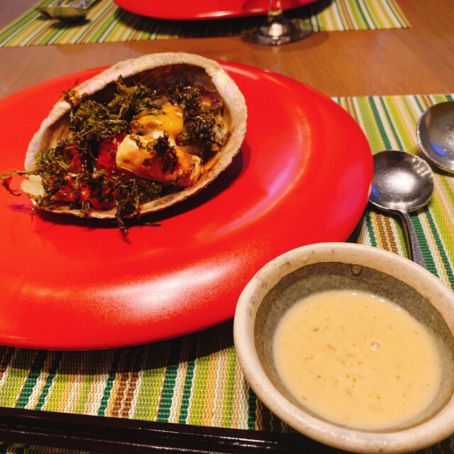 柔らか鮑の黒海苔グリル あおさのクリームソース