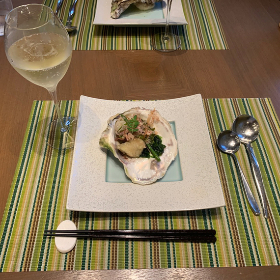 帆立や平貝とも違う歯触りと濃くないソースのうま味が、ワインを引き立てる