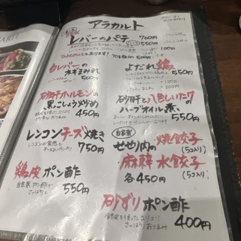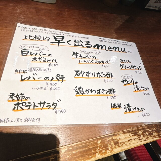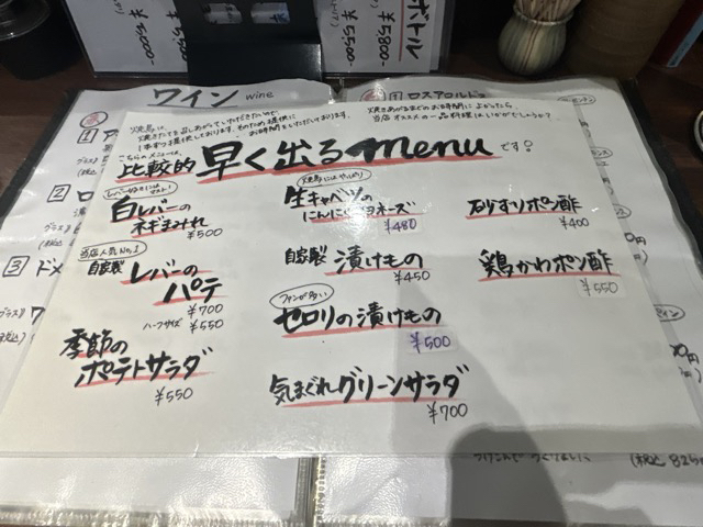 スピードメニューのセロリと白レバーを注文