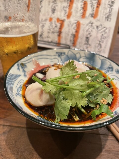 柔らかい鶏肉とタレが合ってて美味いわ。パクチーも合う。