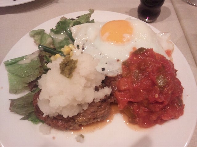 ハンバーグの柔らかさは、舌でも崩れるぐらい。それにこの旨味ソース、間違いないっ。サラダが肉の下敷きになってますが、これもまたソースを吸って、最高!丼にしてくれないかな(笑)