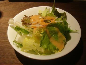 サラダ。ドレッシングには摩り下ろした人参でしょうか?