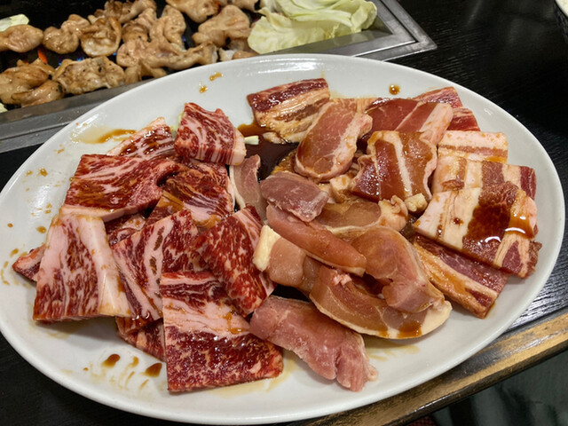 牛ロース2人前、かしわ1人前、豚バラ2人前