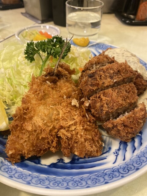 海老については評価を下げますが、ヒレカツやクリームコロッケは定食屋さんレベルとしては良いと思います。キャベツを丸ごと使うのは良いのでが、やたらと芯の部分があったのはマイナスです。
