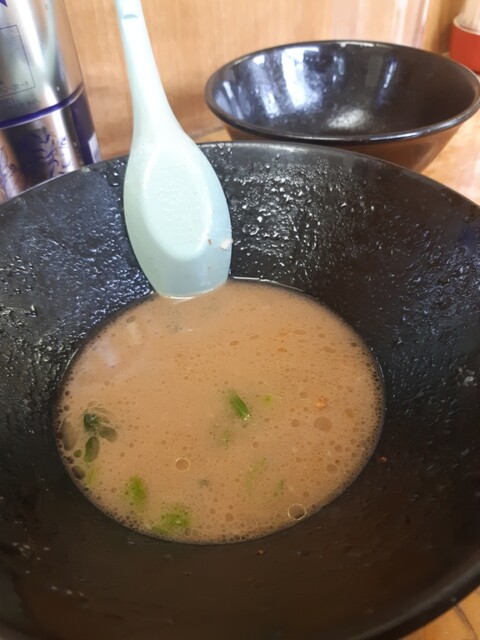 豚骨醤油スープ、醤油味は抑え気味ですが旨いです