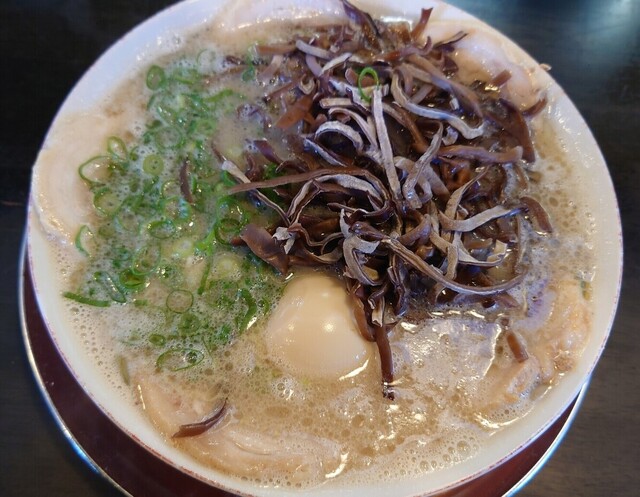 今回は「博多チャーシューメン半熟煮玉子入り」1150円と「ごはん(小)」100円と「辛ミンチ」150円を券売機で購入。麺の固さはバリカタ、キクラゲ多めでオーダー。なお、替え玉は現金ではなく、食券制に変わりました。いつも替え玉をするか、ごはんを食べるか悩むんですが、ここの辛ミンチが大好きなので、ついついごはんを頼んでしまい、替え玉は見送ってます(汗)ラーメンもうまいが、辛ミンチや辛子高菜もめちゃうまいのだ。