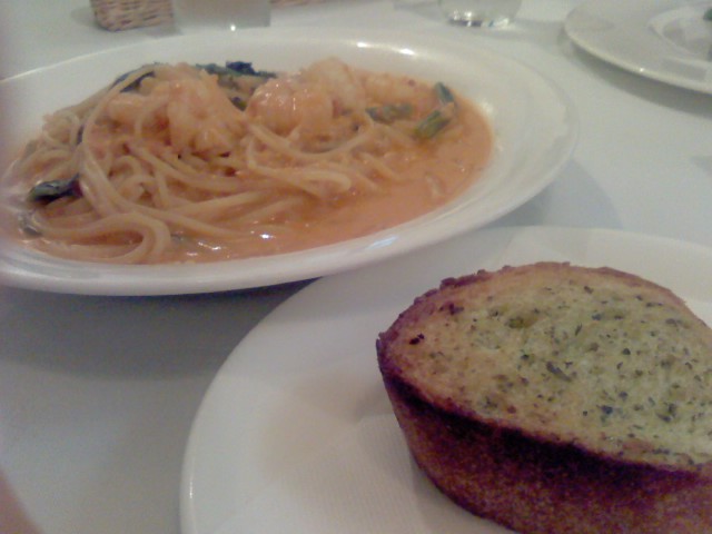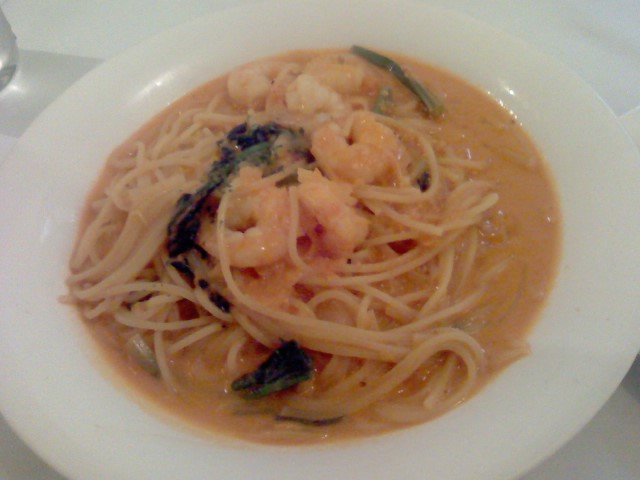 硬めゆでのパスタにたっぷりの海老、そして