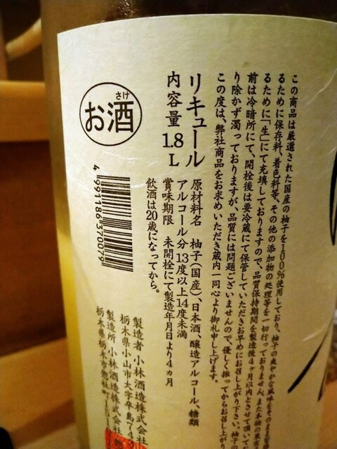ゆず酒は一押し。CPはお酒の量にもよりますが、生ビール2杯 日本酒4合程度。