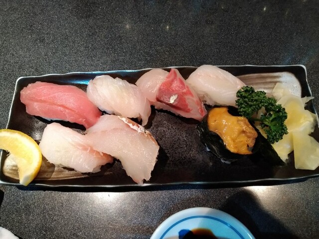 すしは上を注文、シャリ玉やや大きめ。ネタは地元系が主。帰路の時間制限90分がなければと悔やまれた!