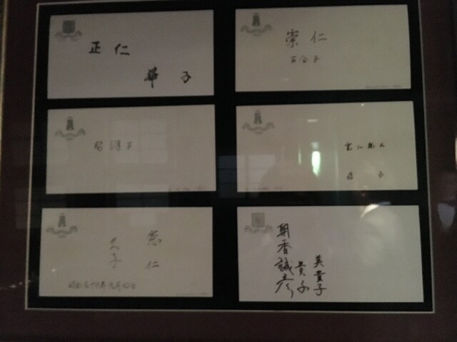 エントランスからダイニングへと続く廊下には、世界各国の王侯貴族やセレブリティのサイン、貴重なアンティーク品が並び、ダイニングへ向かうまでの高揚感を演出している。流石にこのサインは撮影は撮影出来ない。