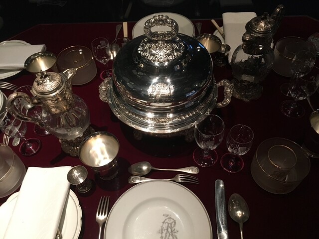 エントランスホール内には、1867年の「三皇帝の晩餐」で実際に使用されたテーブルセッティングが再現・展示されており、歴史的な調度品がゲストを迎える。