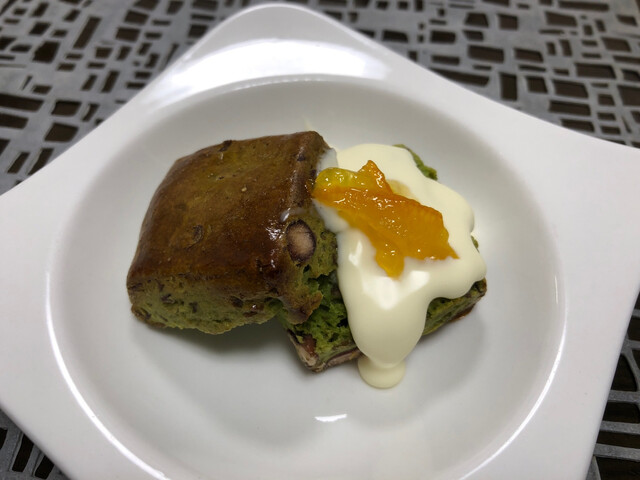 抹茶のスコーンは京都の「一保堂茶舖」の抹茶を使用している。