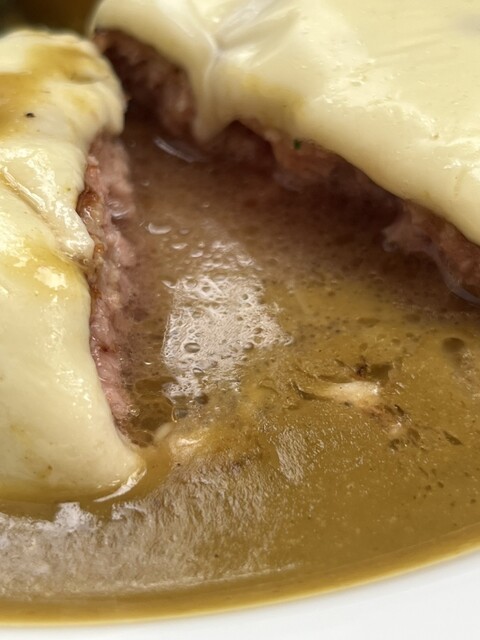 チーズカレーハンバーググラタン、えって!言うほど大きなのがきました。