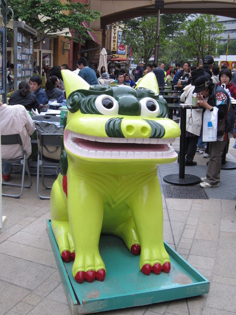 大きなシーサーが出迎えてくれた街は、なんちゃって沖縄感。