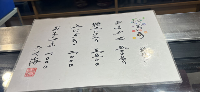 上にぎり税別2000円、上にぎりのウニ入りが税別2,500円9貫(いくらと穴子も入ってる)赤だし350円