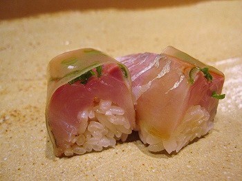 初め、こちらのご主人は仕事を黙々とこなす職人気質の無口で笑顔の少ない方だと思ったのですが、時間が経つにつれ段々と会話(最近のマグロ事情やご主人お勧めの店など)が弾み、とても楽しくお鮨を食べることが出来ました