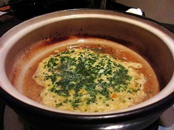最後のしゃぶしゃぶ風の牛もつ鍋は、土鍋で登場