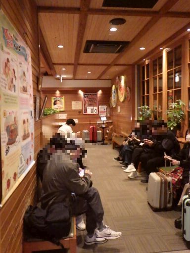 入店待ちの客。奥に見えるのが発券機