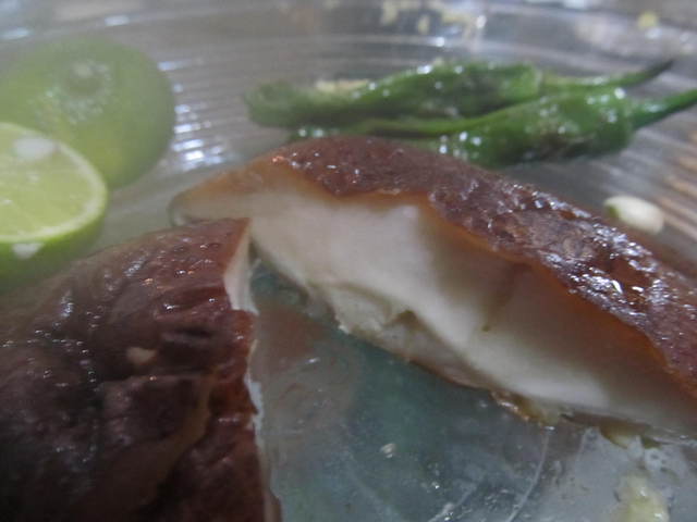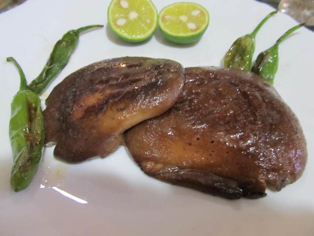 しし唐とスダチを添えて