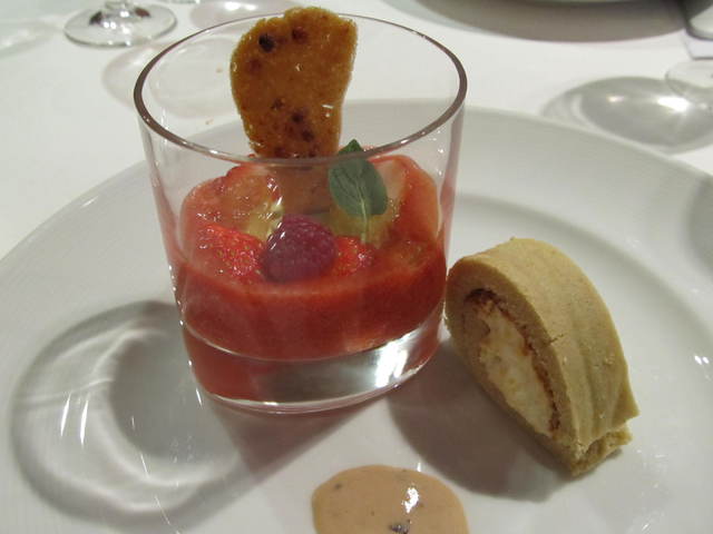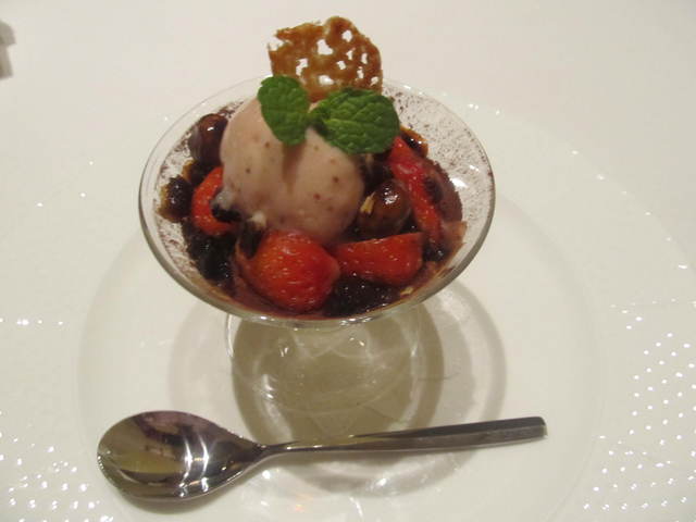 マスカルポーネのティラミス風 苺と苺ジェラート添え