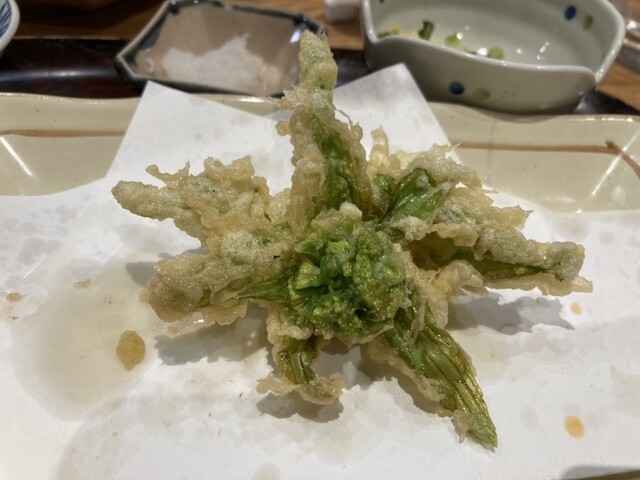 先ずはもちろんあら川さんと言えば十四代の龍泉からいただきます。もちろん摘みは天ぷら盛り合わせに追加でこの季節の蕗のとうや菜の花の春野菜の天ぷらも添えて。‼️
