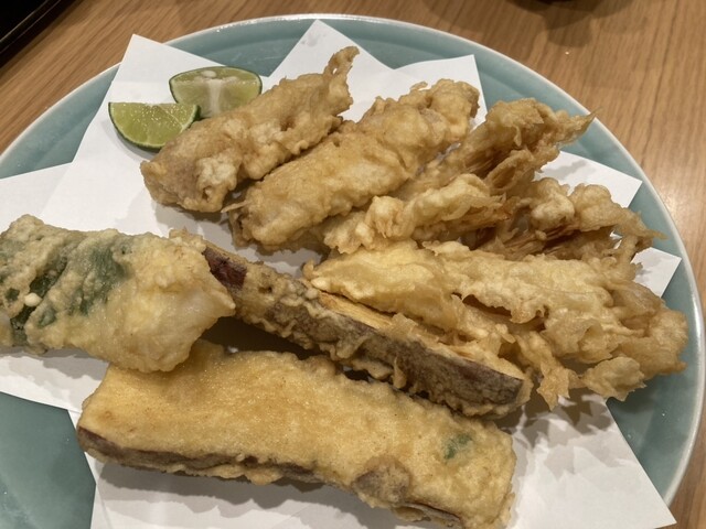 刺身の盛り合わせもいただいて、次は更に天ぷらの追加でアナゴのカレー塩や舞茸、さつまいももいい季節ですね。❣️